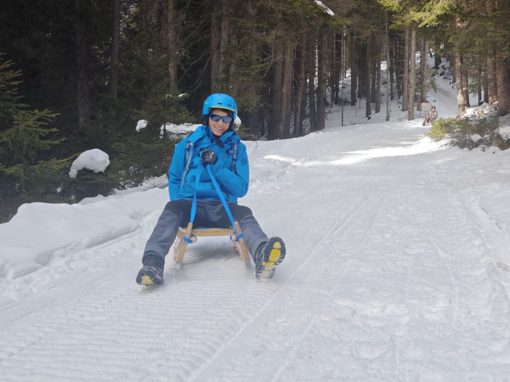 Ein Highlight: Nachtrodeln mit Beleuchtung