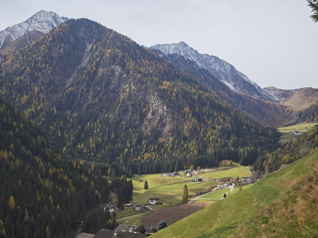Nördlich des Tales erstreckt sich ein langer Höhenrücken zwischen dem Platschjoch und dem Gostjöchl. Auf seinem Plateau liegt eine traumhaft schöne Hochalm mit weiten Wiesen und lichten Lärchenbeständen. Von hier oben hast du großartige Ausblicke über die umliegenden Berge und Täler. Am Südhang dieses Höhenzuges verläuft der Panoramaweg Jaufental – ein sonniger Weg, der vor allem im Frühling und Herbst ideale Bedingungen zum Wandern bietet. Hinter dem Höhenzug zieht sich die Jaufenstraße bis zum Jaufenpass, den du vom Talende aus ebenfalls zu Fuß erreichen kannst.